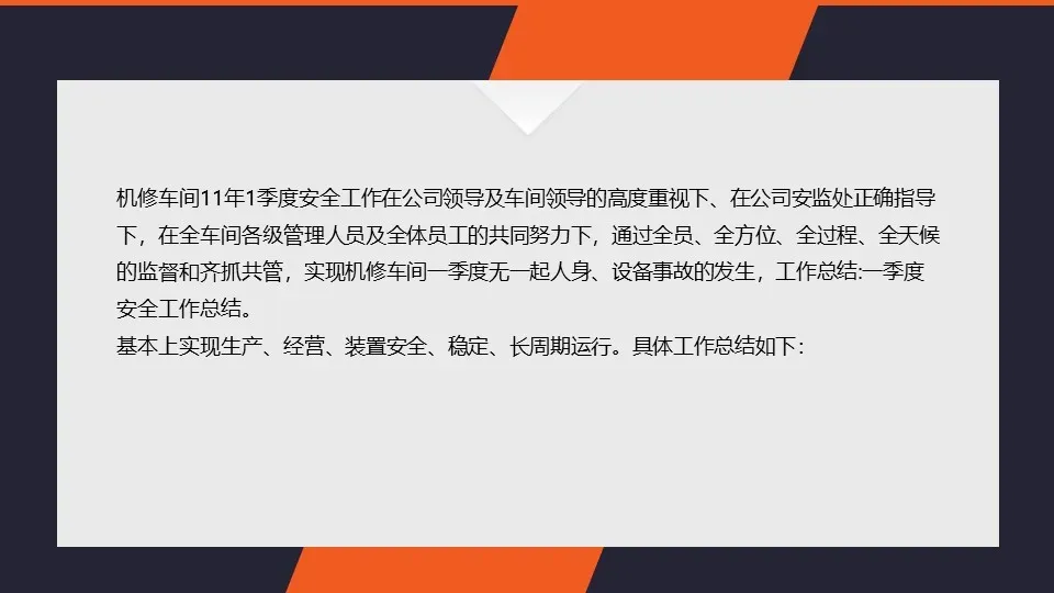 一季度安全工作的总结,既是对过去工作的回顾,也是对未来工作的展望。我们将继续坚持“安全第一、预防为主、综合治理”的方针,不断加强企业的安全工作,确保企业的安全生产和稳定发展。同时,我们也希望全体员工能够共同努力,共同营造安全、稳定、和谐的工作环境。