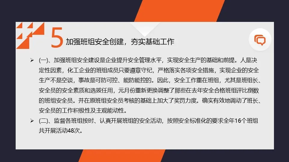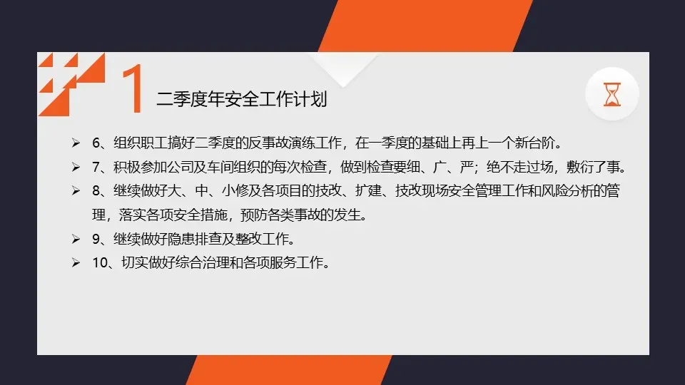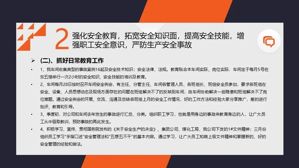 我们进一步完善了企业的安全管理体系,明确了各级安全责任和任务,落实了安全生产责任制。同时,我们还加强了与相关部门之间的沟通与协作,形成了齐抓共管的安全工作氛围。