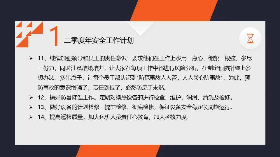 1. 加强安全培训和演练,提高员工的安全意识和技能水平;