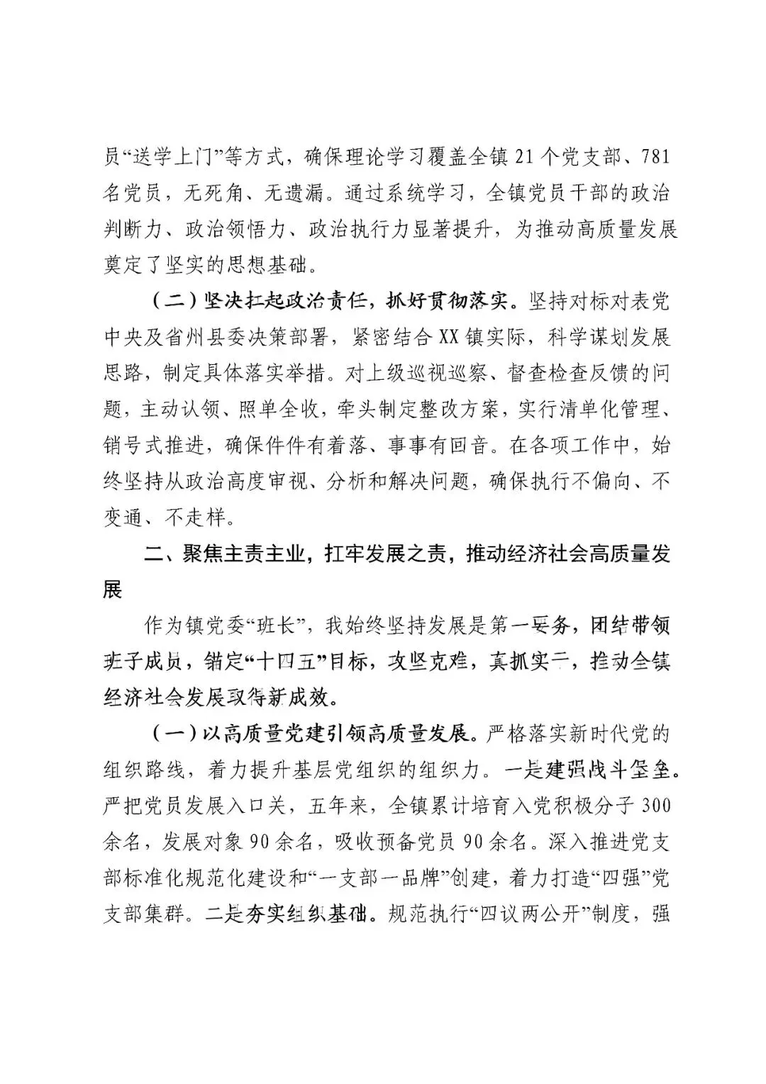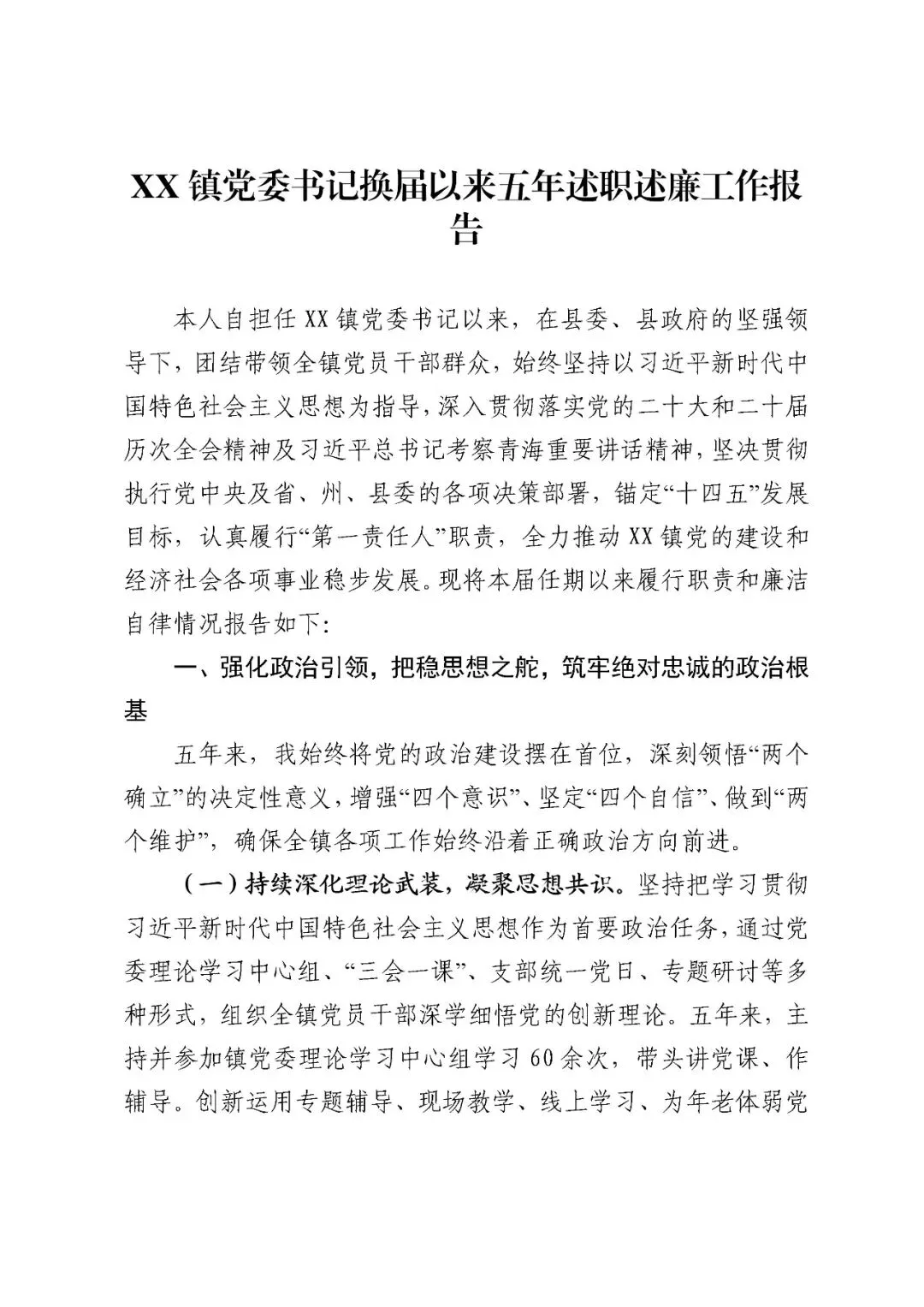 XX镇党委书记换届以来五年述职述廉工作报告(3133字)