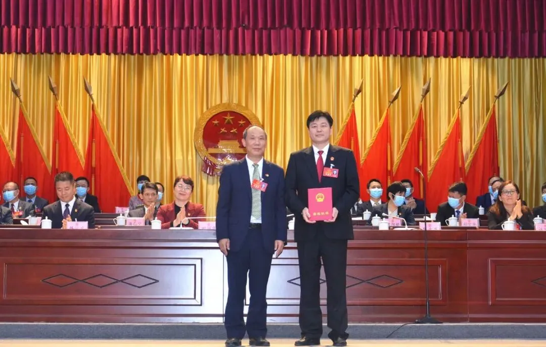 2月5日下午,东方市第十五届人民代表大会第九次会议举行闭幕会,林明礼同志全票当选东方市人民法院院长,其在大会上所作的2020年东方市人民法院工作报告得到与会代表及列席人员的高度肯定,在表决中获全票通过。东方市人大常委会副主任陈永发为林明礼院长颁发当选证书(董林/摄) 公平正义是法院工作永恒的主题,人民满意是法院工作的不懈追求。2021年,东方法院将更加紧密地团结在以习近平同志为核心的党中央周围,以习近平新时代中国特色社会主义思想为指引,在市委的领导、市人大的有力监督下,狠抓执法办案第一要务,持续推进司法体制改革,大力加强队伍建设,不忘初心、牢记使命、锐意进取、砥砺前行,奋力推动法院各项工作再上新台阶,为东方建设宜居宜业宜游的国际滨海公园城市和加快海南自由贸易港建设提供坚强的法治保障,以优异的成绩迎接党的百年华诞!
