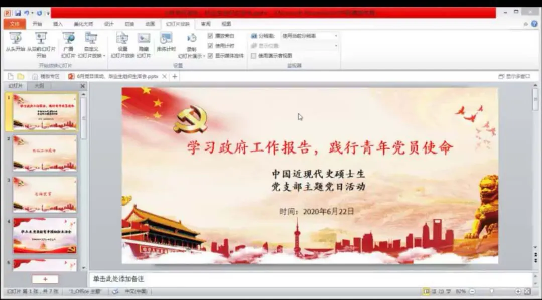 为增强对支部党员的引导与教育,6月22日晚,中国近现代史硕士研究生党支部利用腾讯会议开展了“学习政府工作报告,践行青年党员使命”主题党日活动暨毕业生党员教育专题组织生活会,支部党员、发展对象和入党积极分子积极分子悉数参会。