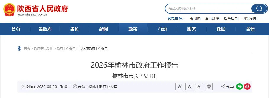 六是以务实举措保障民生需求。统筹挖掘七大类1.1万个就业岗位,城镇新增就业3.4万人。新投用学校9所、新增学位1.46万个,榆林学院新校区一期正式启用、成功更名榆林大学。组建新型医联体25个,64个检验项目实现8省互认,为70岁以上老年人免费接种流感疫苗和肺炎疫苗7.3万剂次,糖尿病、高血压门诊用药定点二级医疗机构报销比例达到50%以上。新投用社区食堂30个、农村互助幸福院80个,公办托育机构县县全覆盖。空气质量全面改善、全域达标,中心城区PM2.5平均浓度连续四年全省最优。十件民生实事全部完成年度任务。