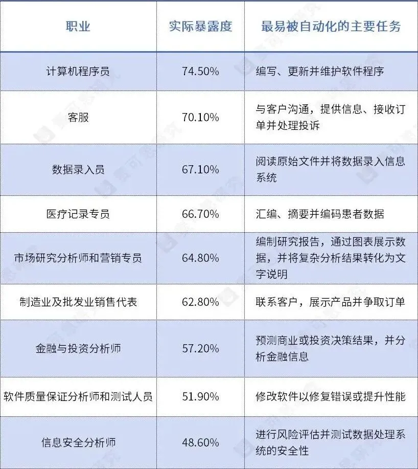从上述研究我们可以看出,计算机相关的职业正处在AI影响最为直接的领域之一。