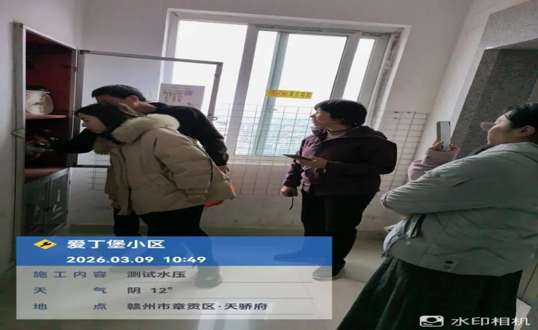 2026年3月9日,消防维修单位、长红居社区委会与业委会共同对消防水泵维修后的启动和楼层消防栓水压进行了现场查验。