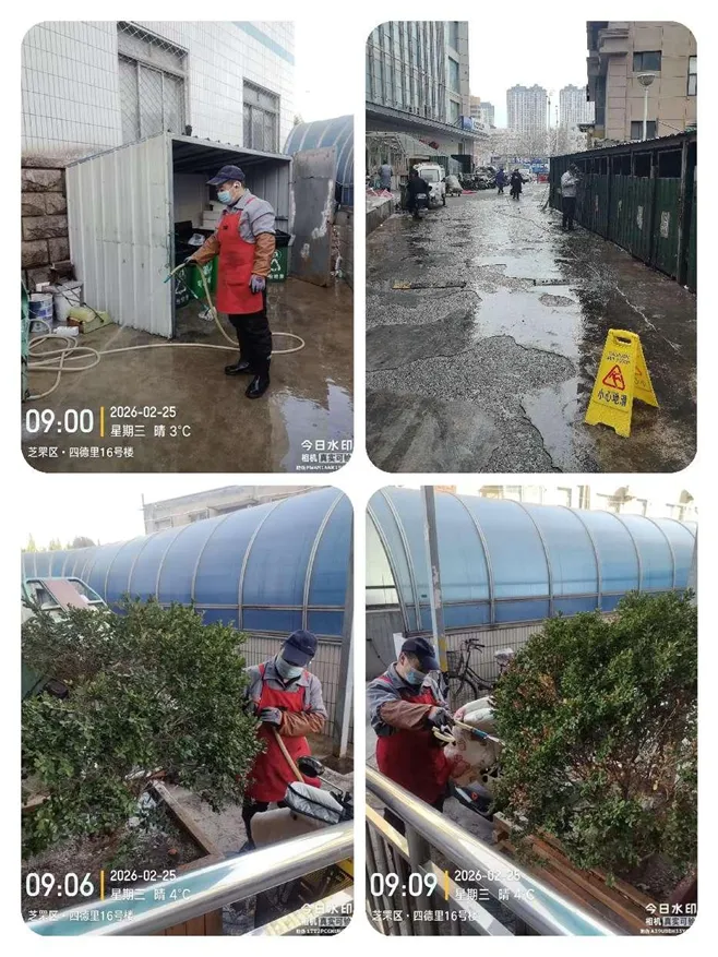 二月适逢农历新春佳节,保洁部门在保障日常清洁服务的基础上,重点完成了春节前后的环境大扫除、清洁维护及假日期间的值守保洁工作。全体保洁人员团结协作,克服了节假日人手相对紧张等困难,确保了所辖区域在节日期间的整洁、美观与安全,圆满完成了二月份的保洁任务。