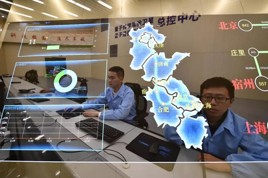 2018年5月21日,在中科大先进技术研究院量子科学实验卫星、量子通信京沪干线总控中心,年轻的科研工作者正在监控大屏。