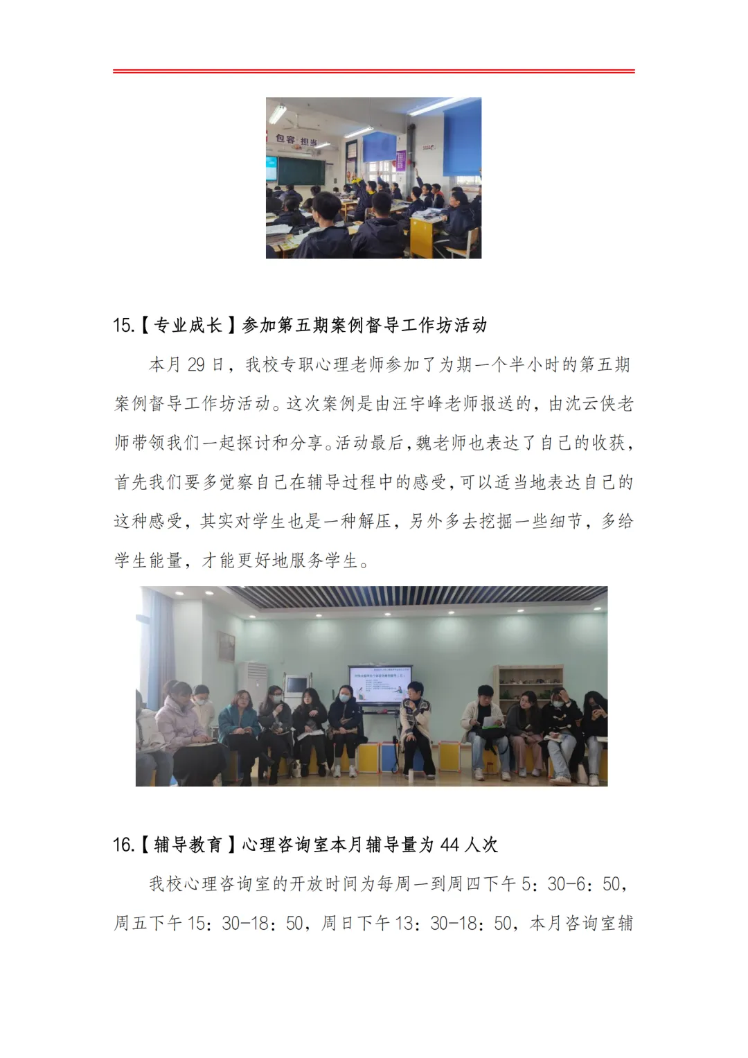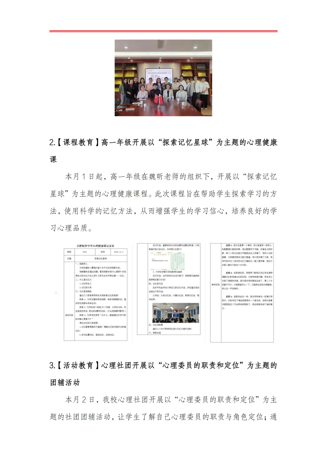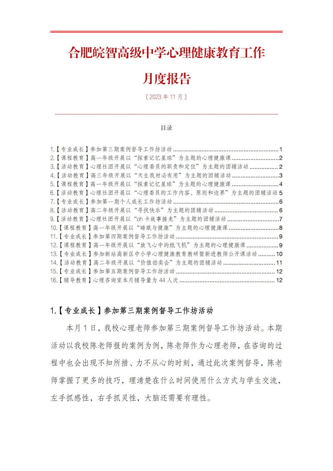 >合肥皖智高级中学心理健康教育工作月度报告
