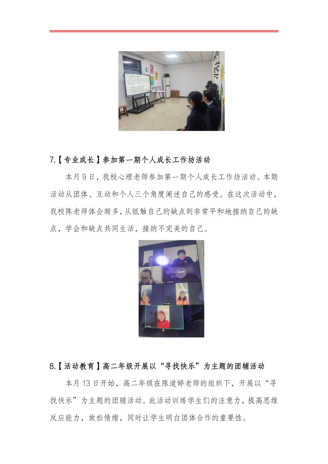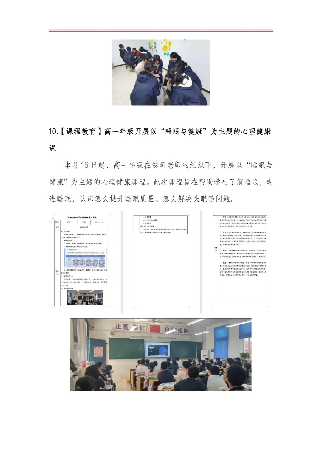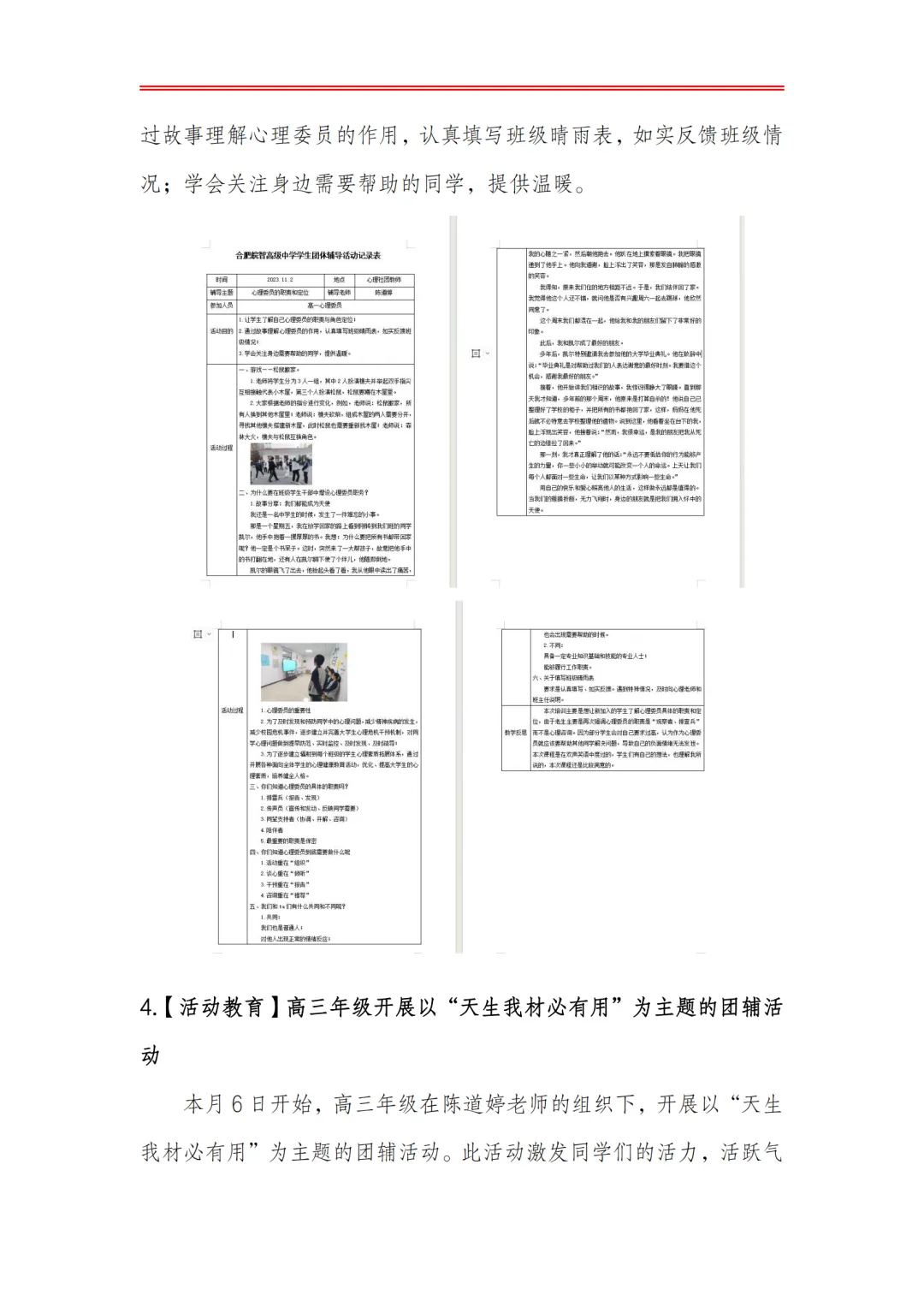 >合肥皖智高级中学心理健康教育工作月度报告