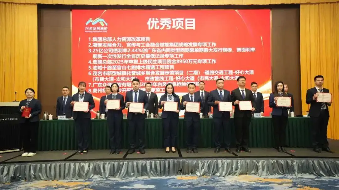 会上,集团党委副书记苏棣芳宣读了《茂名市发展集团党委关于表扬2025年度优秀集体及个人的通报》,集团领导班子成员为优秀集体、优秀项目、优秀服务单位、先进个人、优秀新员工、杰出个人颁奖。