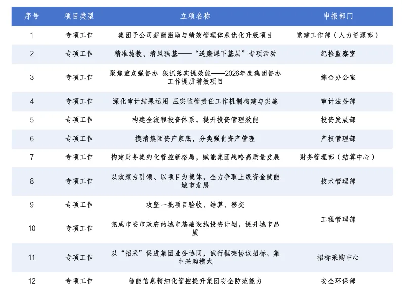 集团各部门及下属企业现场向集团领导班子递交2026年度经营业绩责任书和优秀项目立项书,明确了“书记项目”“一把手项目”“专项工作”以及年度经营考核任务,压实责任、明确目标,确保各项任务精准落地、高效推进。
