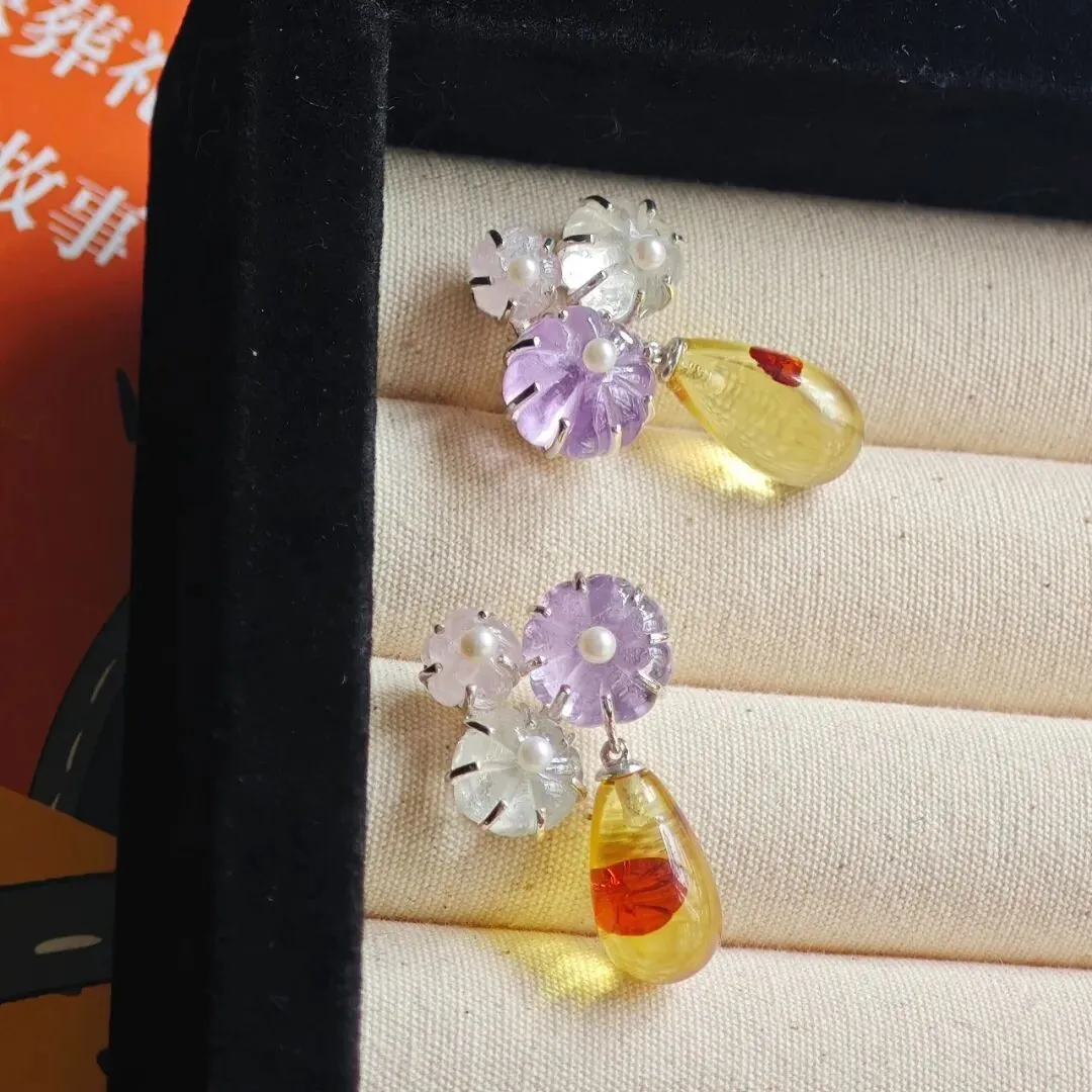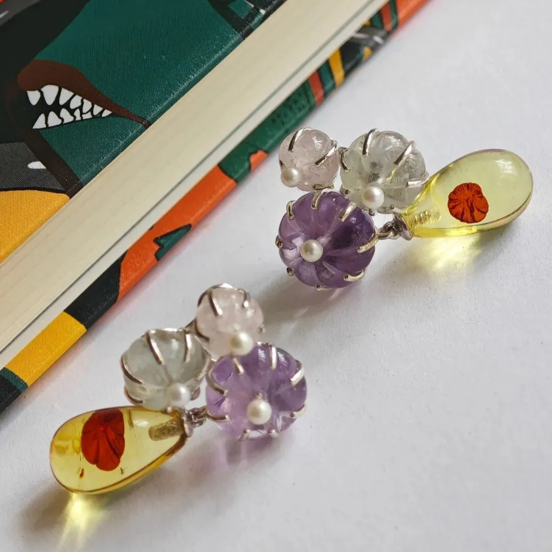 花团锦簇的这对耳坠一开始画图的时候想的是菊花,就是瑞云殿那种翻江倒海又肉感结实的品种,毕竟这是去年秋天就设计好的。等做好发现与其说像菊花不如说更像棉花。