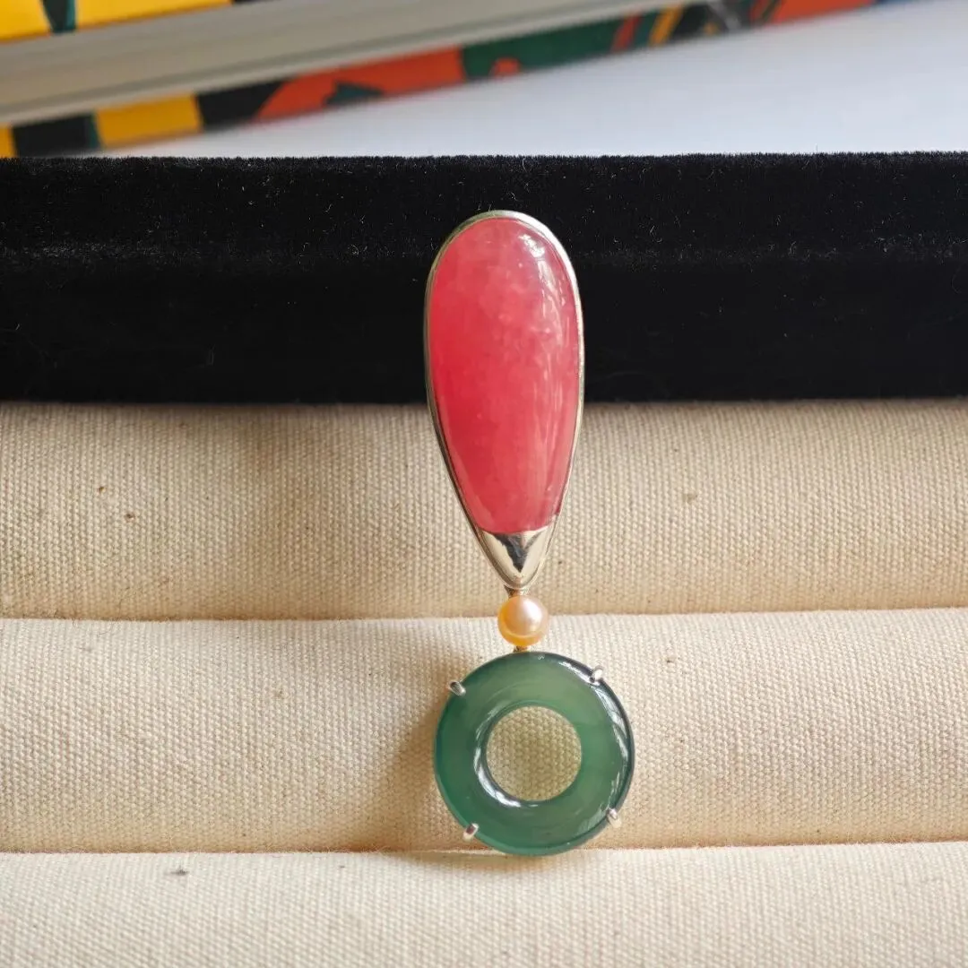 还有一个嫩红配老绿就显得稳中有些不谙世事起来。红的是阿根廷国石红纹石,配翡翠甜甜圈。起名还用想吗?周杰伦初见颓势之作——《惊叹号》。