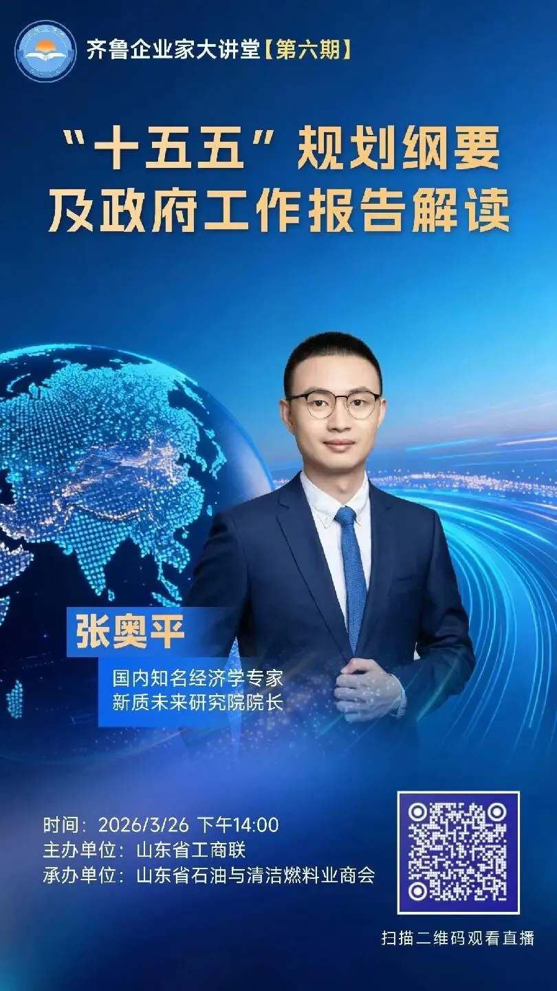 今天下午2:00,第六期齐鲁企业家大讲堂准时开讲!本期活动特邀国内知名经济学专家、新质未来研究院院长张奥平,围绕“十五五”规划纲要及政府工作报告作宣传解读。张奥平老师将通过详实的对比分析,深入剖析政策脉络与演变逻辑,帮助企业家精准把握宏观走向与发展机遇。其解读视角独到、内容务实前瞻,广受企业家好评。欢迎广大企业家朋友积极收看,共赴这场政策解读的思想盛宴!