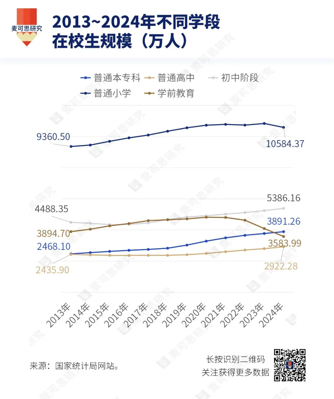 2026年、2029年、2032年——我国学龄人口将经历“排浪式”变化,初中、高中、高等教育学龄人口在这3个年份依次“达峰”。