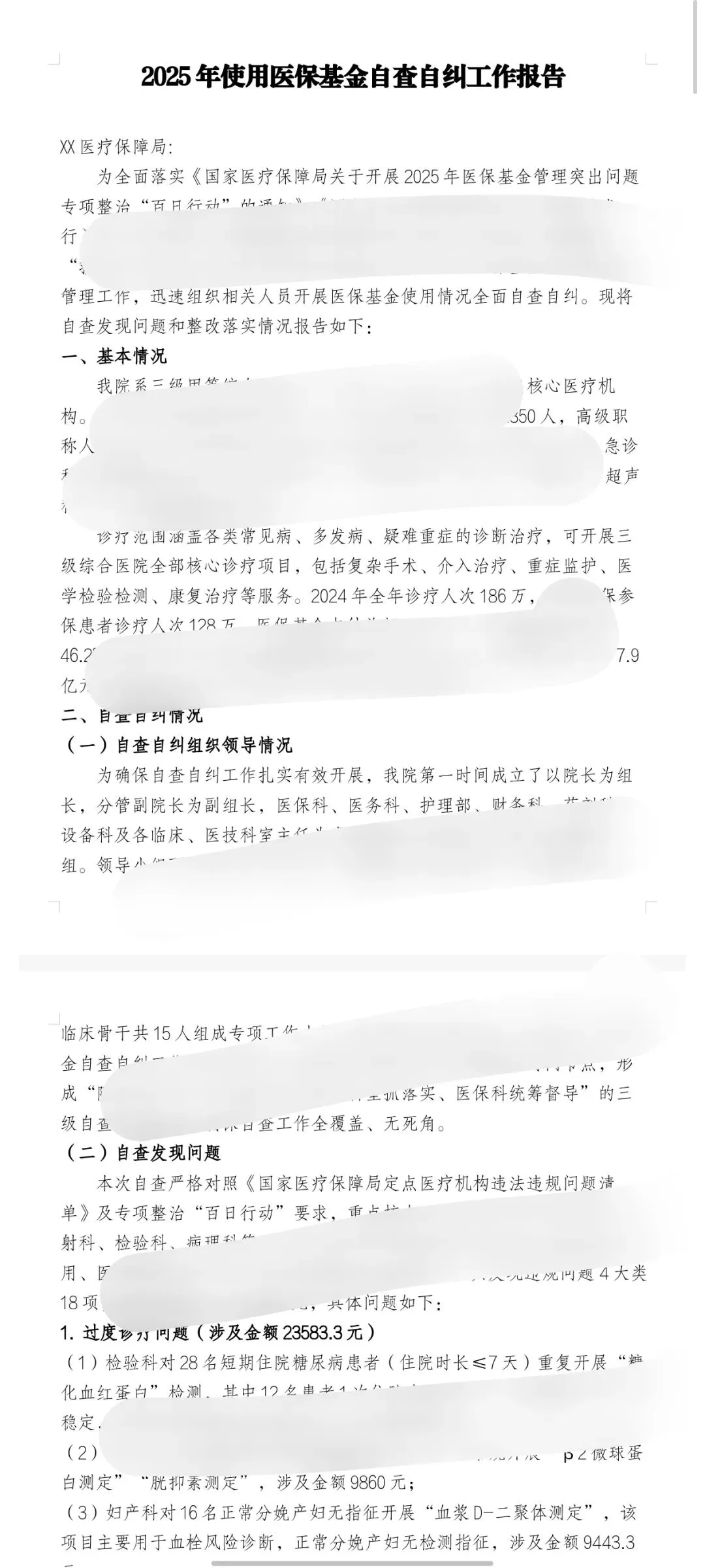>年度使用医保基金自查自纠工作报告