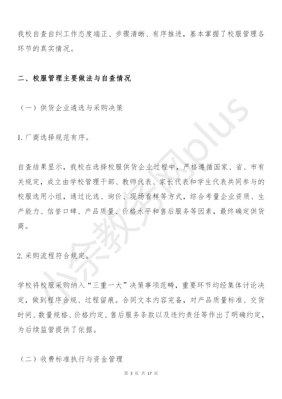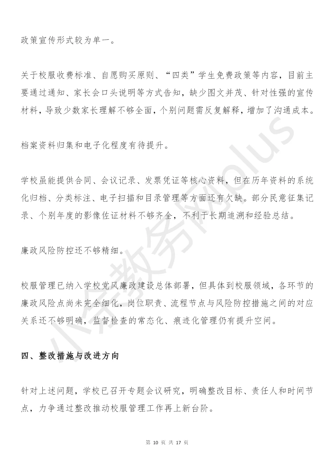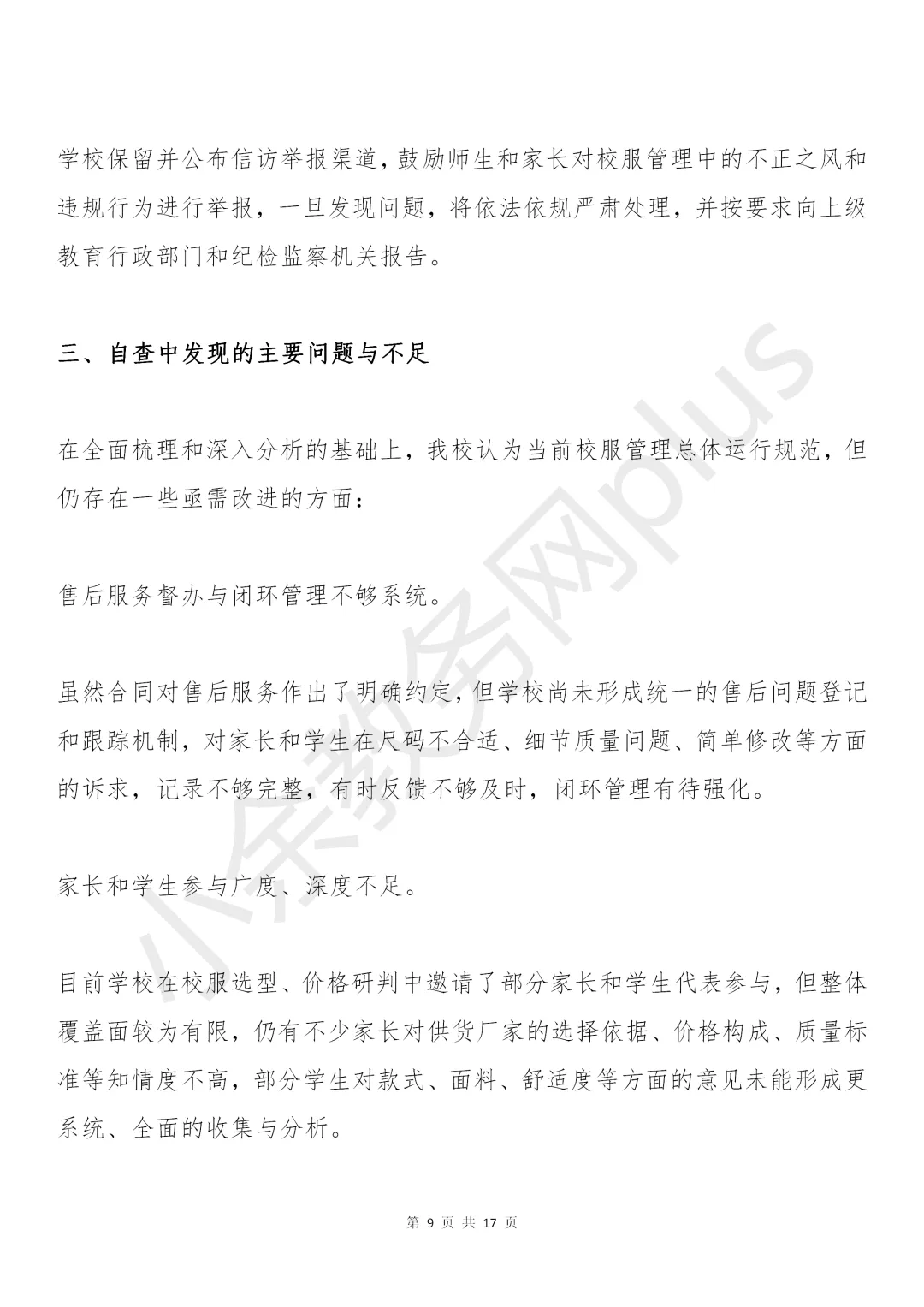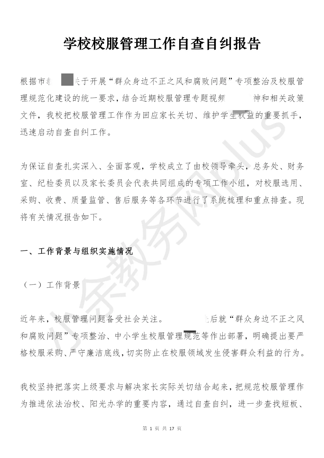 学校校服管理工作自查自纠报告模板推荐。