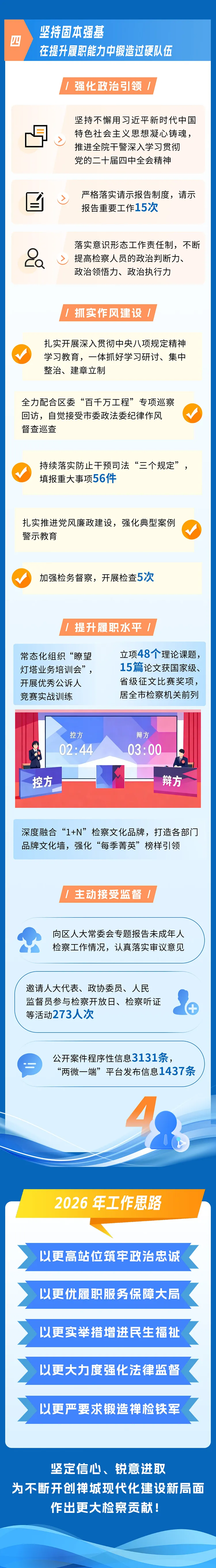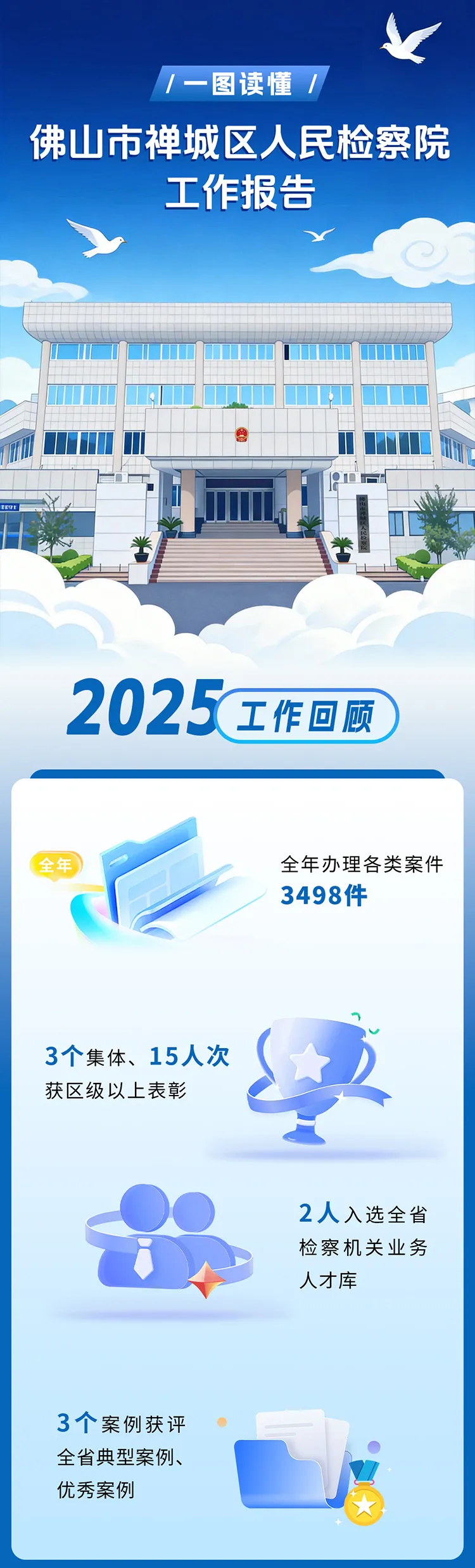 2025年,在区委和上级检察机关的正确领导下,在区人大及其常委会的有力监督下,禅城区人民检察院坚持以习近平新时代中国特色社会主义思想为指导,全面贯彻习近平法治思想,认真学习贯彻党的二十大和二十届历次全会精神,深入贯彻习近平总书记对广东系列重要讲话重要指示精神,依法全面履行法律监督职责,高质效办好每一个案件,为大局服务、为人民司法、为法治担当,各项检察工作取得新进展新成效。