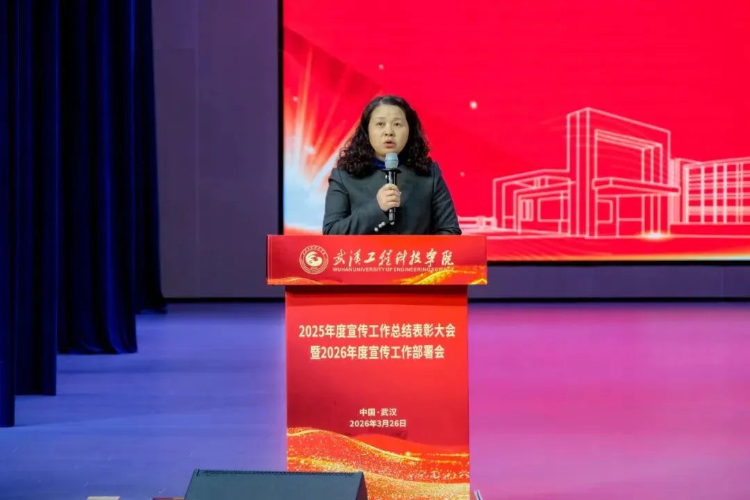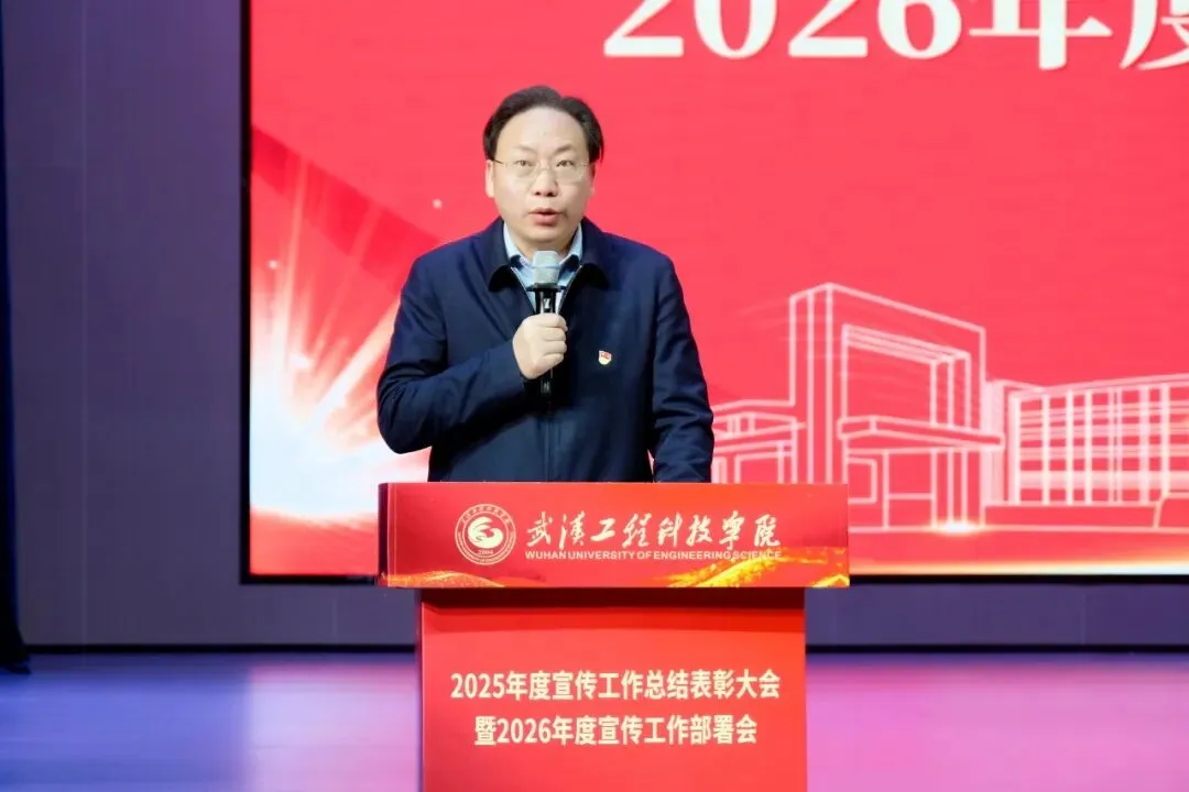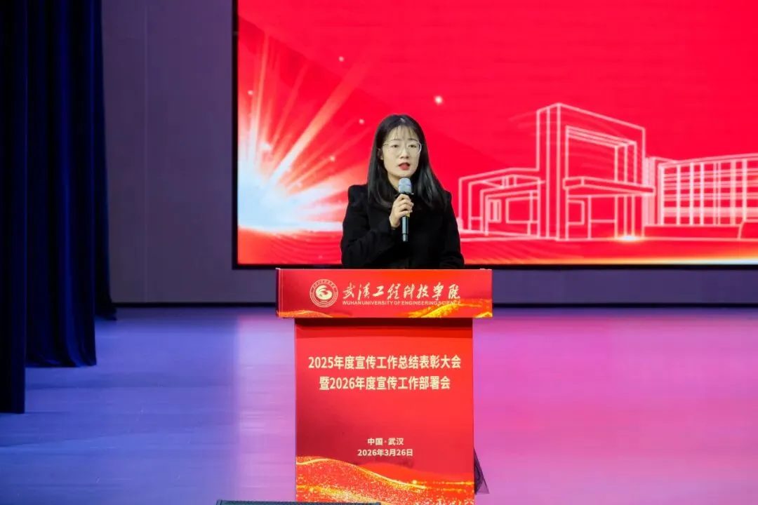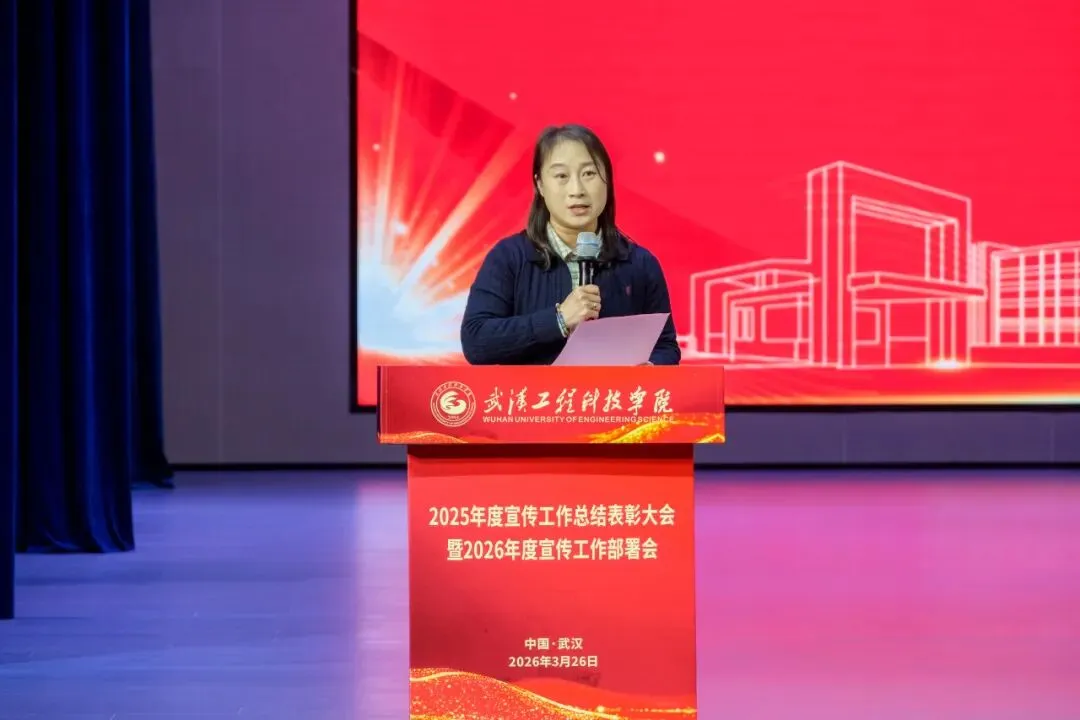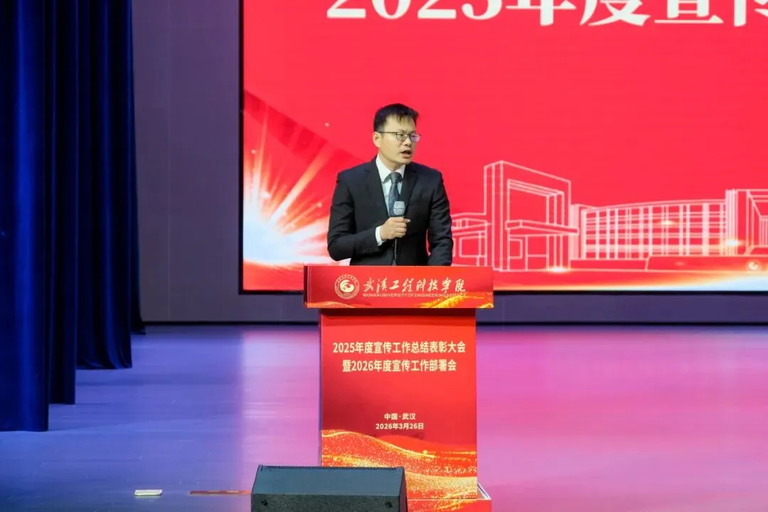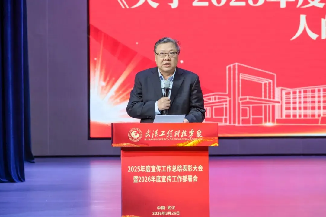 为全面总结2025年度宣传工作成果,表彰先进典型,提升全校宣传工作队伍,扎实推进我校宣传工作高质量发展,3月26日上午,武汉工程科技学院2025年度宣传工作总结表彰大会暨2026年度宣传工作布置会在学校礼堂举行。学校校领导储祖旺、张会利、廖璐莎、唐军国、胡晶晶、郭万春、赵欢出席本次会议。各职能处室负责人,各学院党总支书记,全体宣传员,受表彰人员及学生代表参加本次会议。大会由党委常委、党政办公室主任刘美中主持。