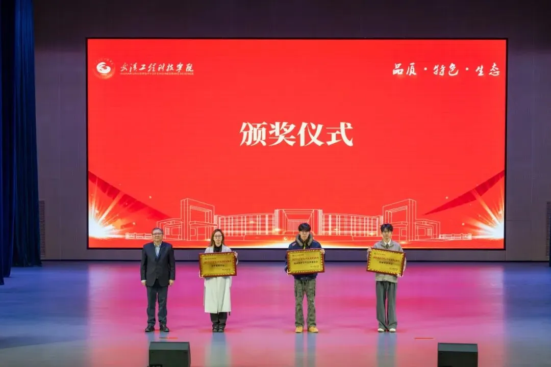 党委常委、校长助理胡晶晶、郭万春、赵欢分别为宣传工作先进个人(学生)获奖代表颁奖。