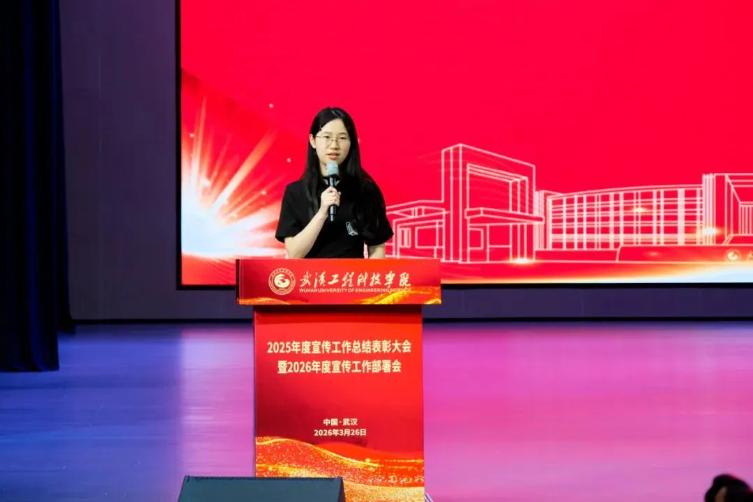 计算机与人工智能学院教师李雪作为宣传工作先进教师代表发言。她表示,这份荣誉属于为武工院宣传工作默默奉献的全体师生。她介绍,过去一年学院宣传工作紧扣立德树人根本任务,聚焦微信公众号深耕内容创作,累计发文431篇,总浏览量突破11.9万次,生动展现了学院办学实力与育人成果,搭建起服务师生的沟通桥梁。她强调,学院宣传工作的推进离不开校党委宣传部的指导支持,上下联动的工作模式形成了强大合力,荣誉是肯定更是新的起点。她展望,2026年学校将以更高标准深化协同联动、强化队伍建设、拓展传播渠道,为学院高质量发展凝聚精神力量,讲好武工院故事。
