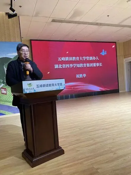 五峰耕读教育大学堂创办人,湖北省四季学知教育集团董事长祝胜华介绍五峰耕读教育大学堂创办的初心和成效