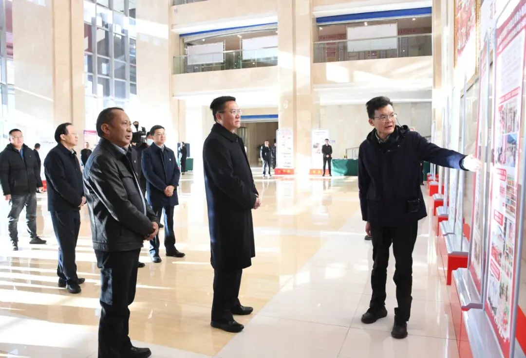 龚会才参观小组团成果展示展板。记者 何瑞 摄龚会才一行参观了“小组团”成果展示,听取了市场供应供销、芒康产业园区发展、职业教育、市藏医院医疗、八宿景区规范化管理运用、左贡电子商务等6个小组团代表汇报。