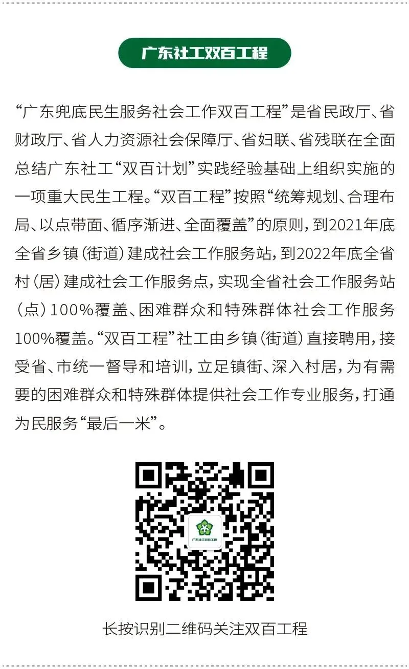 随着社会对特殊困难群体关注度的提升,广东省民政厅继续推进“双百工程”,于2026年1月23日通过小鹅通平台组织开展了“双百”大讲堂第30期线上培训。本次培训围绕两大主题展开:一是《特殊困难老年人相关养老服务政策解读》,由广东省民政厅养老服务处三级调研员程丽红主讲;二是《专业扎根温情兜底——困难残疾人服务经验分享》,由梅州市“双百工程”督导办督导谢倩莹主讲。本次培训聚焦特殊困难老年人及残疾人服务,旨在提升社工专业能力和服务水平。