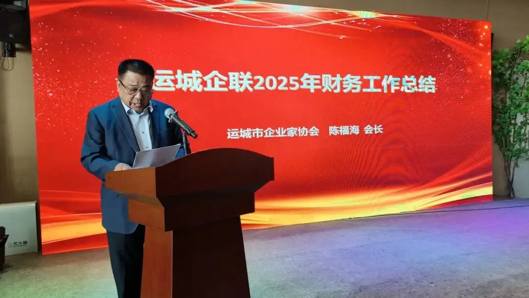 运城市企业家协会会长陈福海作2025 年财务工作总结,汇报了运城企联“四会”2025 年财务收支明细,清晰梳理会费、利息等收入来源和办公、工资、业务活动等支出类目,做到财务工作公开透明、专款专用,切实保障企联规范运营。