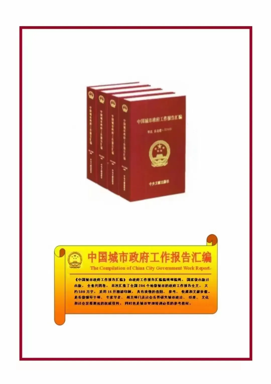 汇聚政策智慧,启迪实践征程。 《中国城市政府工作报告汇编》的出版发行,旨在搭建一座连接国家大政方针与社会具体实践的桥梁。我们诚挚邀请并推荐各领域读者订阅、学习、使用这部重要文献,共同从字里行间汲取奋进力量,为谱写中国式现代化新篇章贡献智慧与力量。
