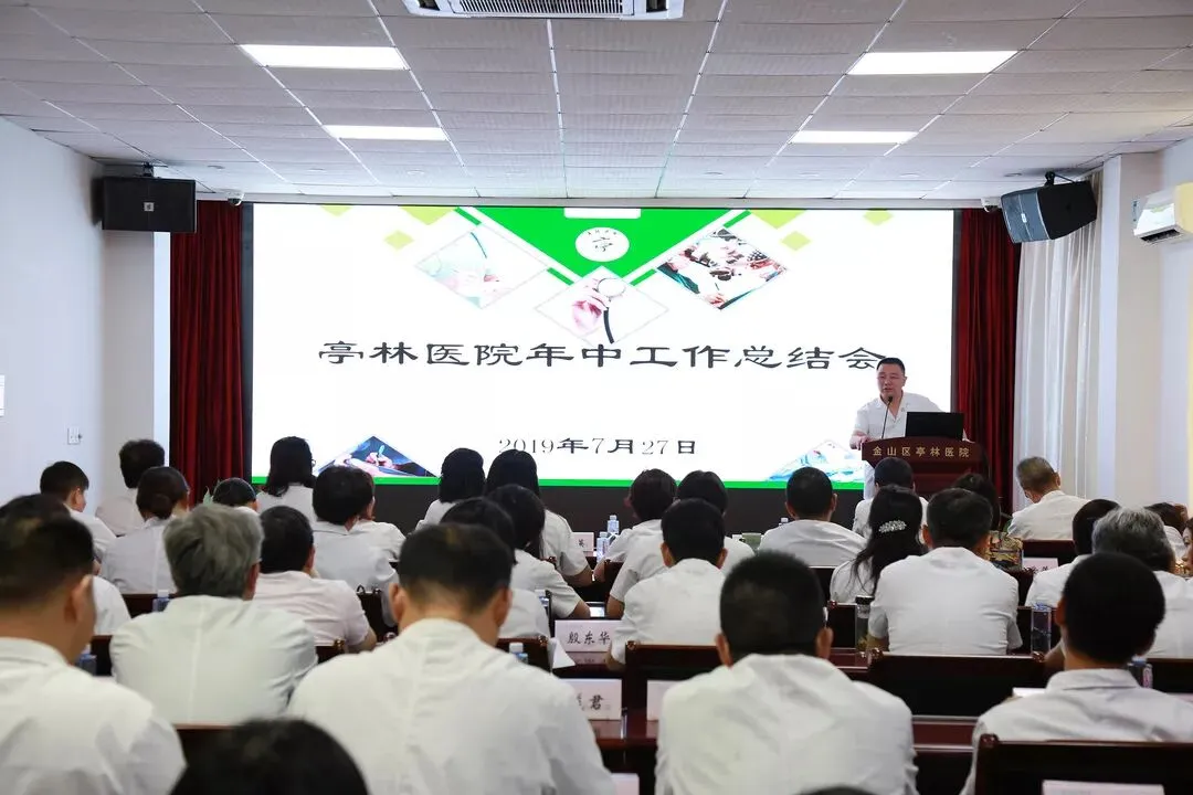 孙继权院长作上半年度医院工作总结,以翔实的数据分析工作量、经济运行状况,介绍医院重大工作取得的新进展,如加盟上海同济医院医疗集团、推动整体迁建。从医疗业务质量、科教、改善就医流程、信息化建设、行风建设、医联体工作、医疗援滇等方面谈重点工作取得的新进步。孙院长结合卫健委相关会议精神,指出我院人力资源、科研水平、学科建设、职工理念等方面存在的不足。报告第二部分部署下半年医院十项重点工作,涉及落实公立医院改革、提升医疗质量、加强学科建设、优化就医流程、提速信息化建设、提高科教研质量等方面。在围绕上半年医院基础建设、设备添置的专题汇报中,总结医院绿化、物业培训、专项保洁、智慧后勤、垃圾分类等8项特色,下半年,后勤工作以职工宿舍修缮、业务用房改造、SPD及物资管理系统上线等10项工作为“重头戏”。