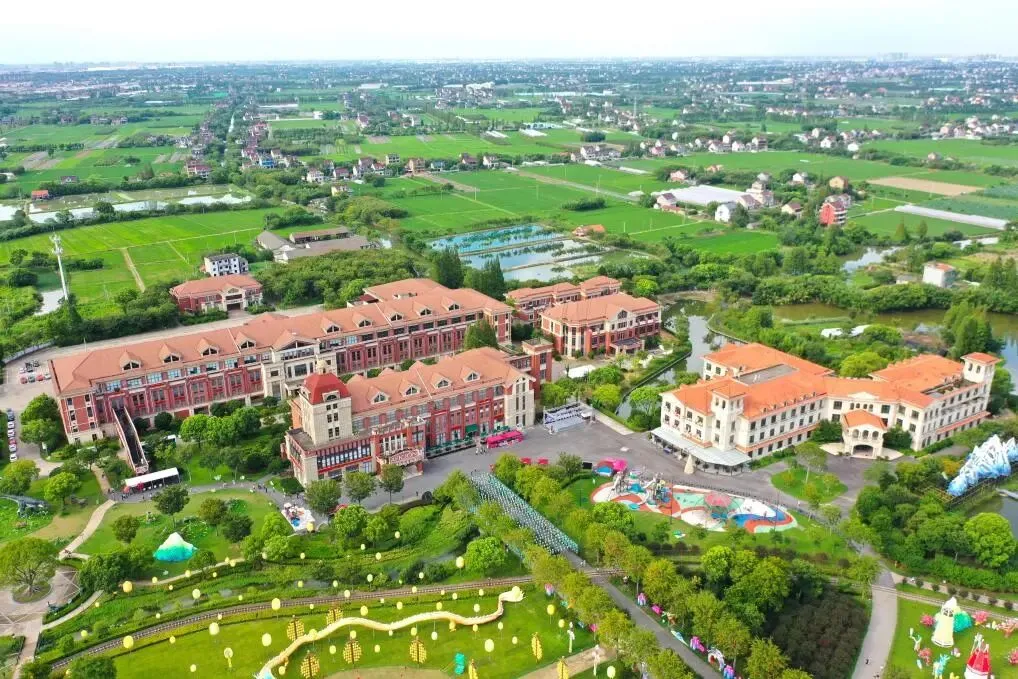 在浙江省嘉兴市嘉善县缪家村拍摄的歌斐颂巧克力小镇(无人机照片)。新华社记者 毛竹 摄