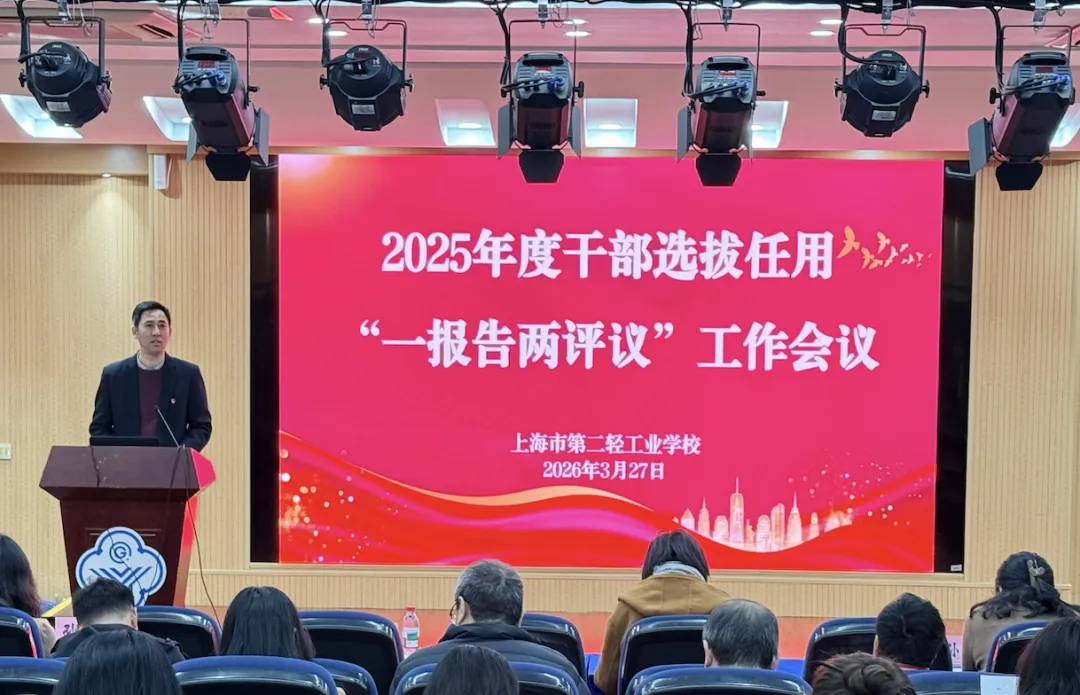 为深入贯彻新时代党的组织路线,严格落实干部选拔任用工作“一报告两评议”相关要求,3月27日,学校召开2025年度干部选拔任用“一报告两评议”工作会议。上海第二工业大学党委组织员张芳芳到会指导。会议由党委书记朱超主持,学校党委班子成员、中层干部、双代会代表参加会议。