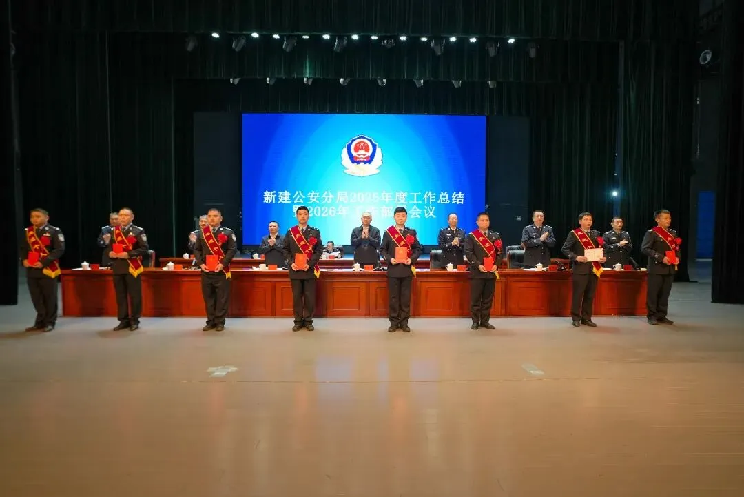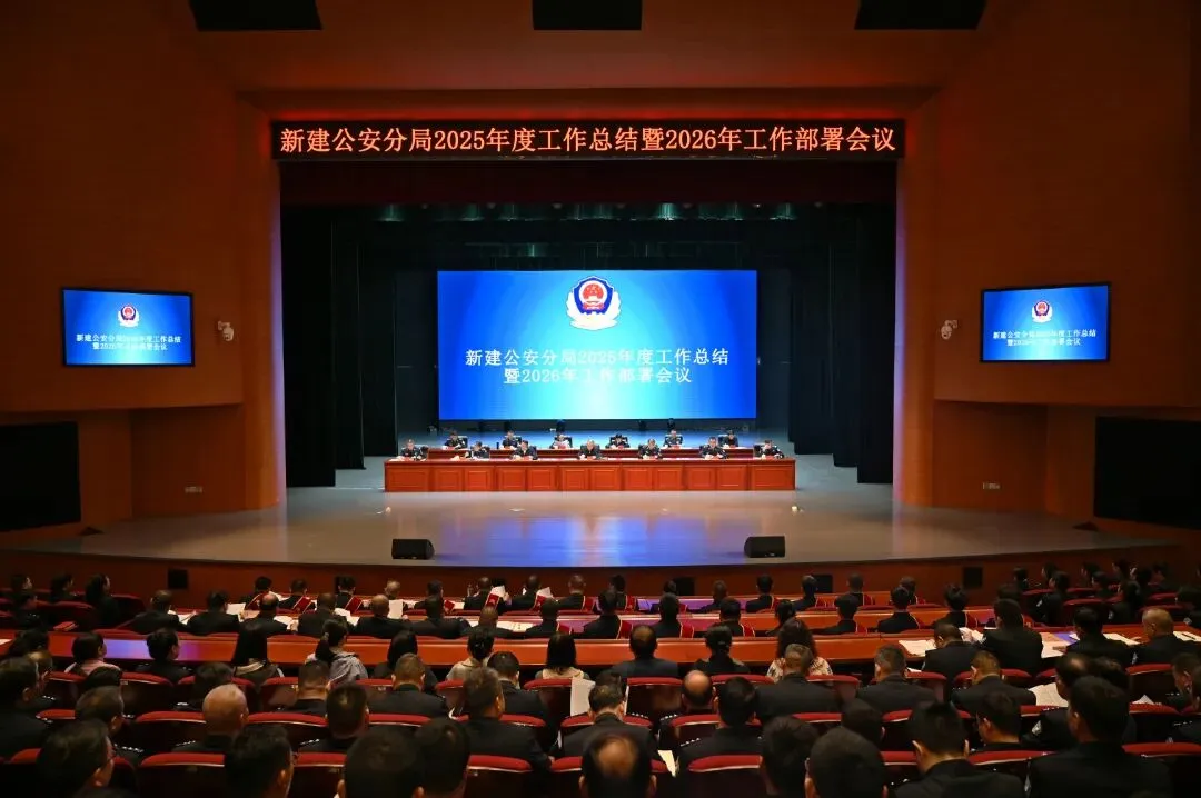 陈奕蒙指出,过去的一年,面对错综复杂的社会形势和急难险重的任务考验,新建公安全体民警辅警忠诚履职、勇挑重担、冲锋在前,守护了“万家灯火”,交出了一份厚重提气的平安答卷。他强调,要在政治建警上作表率,始终做对党忠诚的“刀把子”。深刻把握“公安姓党”的根本政治属性,自觉把公安工作置于全区发展大局中谋划推进,把捍卫政治安全、维护社会安定、保障人民安宁作为首要职责。要在维护稳定上打头阵,始终做平安建设的“主力军”。严密防范、严厉打击各类违法破坏活动,保持对电信网络诈骗、黄赌毒、食药环等违法犯罪的高压严打态势,快侦快破民生小案,让群众真切感受到安全就在身边。要在推动发展上勇担当,始终做服务大局的“护航员”。依法严打侵犯知识产权、串通招投标等经济犯罪,加大对重大重点项目和企业周边治安环境的整治力度,持续优化安保模式,深化生态警务,让“平安”成为新建文旅最亮丽的名片。要在提升新质战斗力上求突破,始终做锐意进取的“探路者”。深化“情指行”一体化运行机制改革,深化“AI+警务”、低空警务应用,持续巩固“退出大轮班”等改革成果,走出一条具有新建特色的公安工作现代化新路。要在为民服务上见真情,始终做人民群众的“贴心人”。深入开展“敲锣大排查、敲门大走访、推门大帮扶”三大行动和“开门纳谏”活动,深化“高效办成一件事”改革,持之以恒推进全面从严管党治警,不断提高公安机关的威慑力、公信力和亲和力。