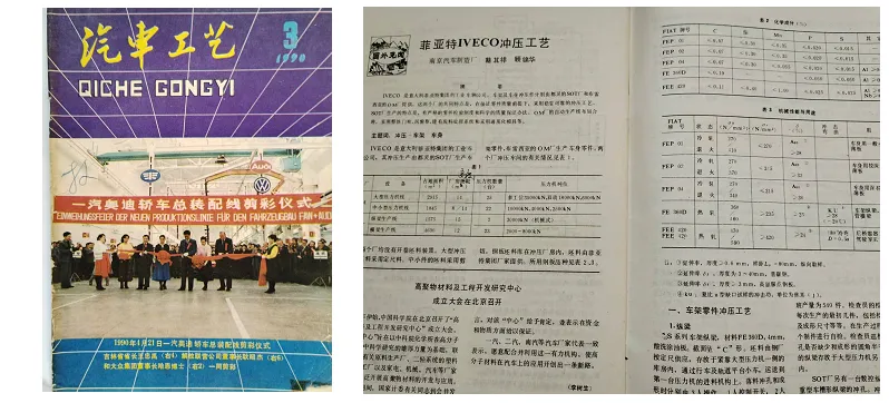 1990年第3期的《汽车工艺》杂志,刋登了我和同事合写的《菲亚特IVECO冲压工艺》国外见闻。