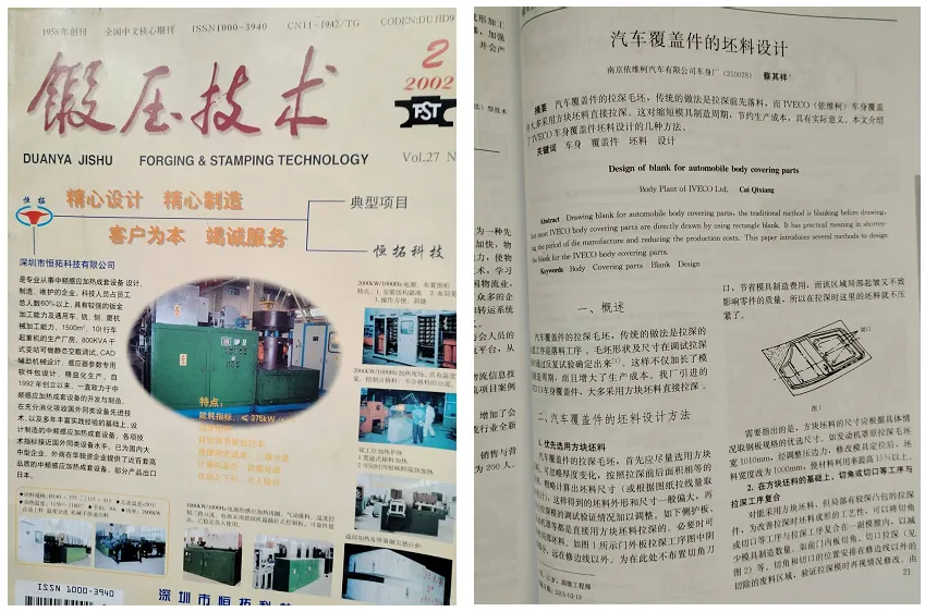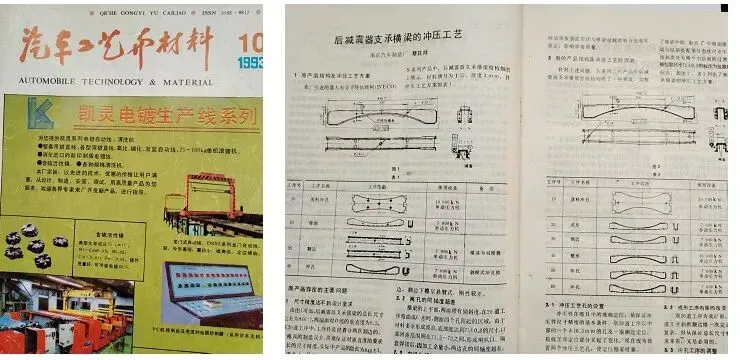 1998年,我被评为高级工程师。递交的两篇论文:一篇《后减震器支承横梁的冲压工艺》发表在1993年第10期的《汽车工艺与材料》杂志上;另一篇《汽车覆盖件的坯料设计》则见于《锻压技术》2002年第2期。