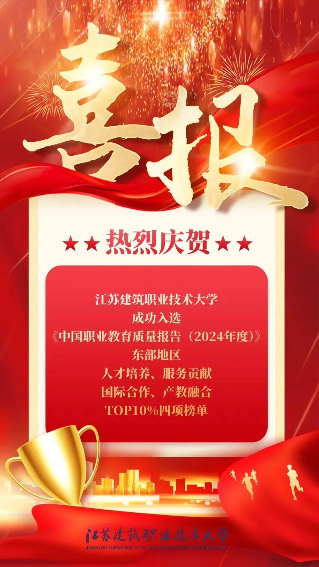 近日,由中国教育科学研究院编著的《中国职业教育质量报告(2024年度)》正式出版,其中专题报告《跨越与发展:职业教育的中国实践》系统总结了2024年度我国职业教育改革发展成效,立体化展示了各省域、各地市及中高等职业学校的创新实践。报告分别遴选了人才培养、服务贡献、产教融合与国际合作四个方面排名前10%的高等职业学校。我校成功入选四项榜单,接续实现“大满贯”。
