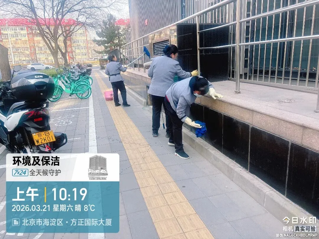 本月环境清洁工作稳步推进,完成园区全面清洁及重点区域常态化保洁,开展楼道、电梯、垃圾桶站等高频接触点位消杀,保障环境卫生。