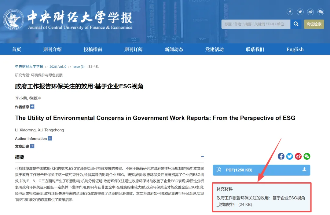 李小荣, 徐腾冲. 政府工作报告环保关注的效用:基于企业ESG视角[J]. 中央财经大学学报, 2026(3): 35-48.