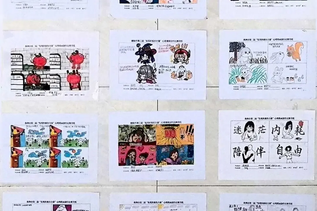 周五,我校第二届“发现积极的力量”心理漫画评比结果揭晓,优秀作品在校园内展出。一幅幅生动漫画,是同学们对积极心态的诠释,让阳光向上的精神风貌在校园传递。