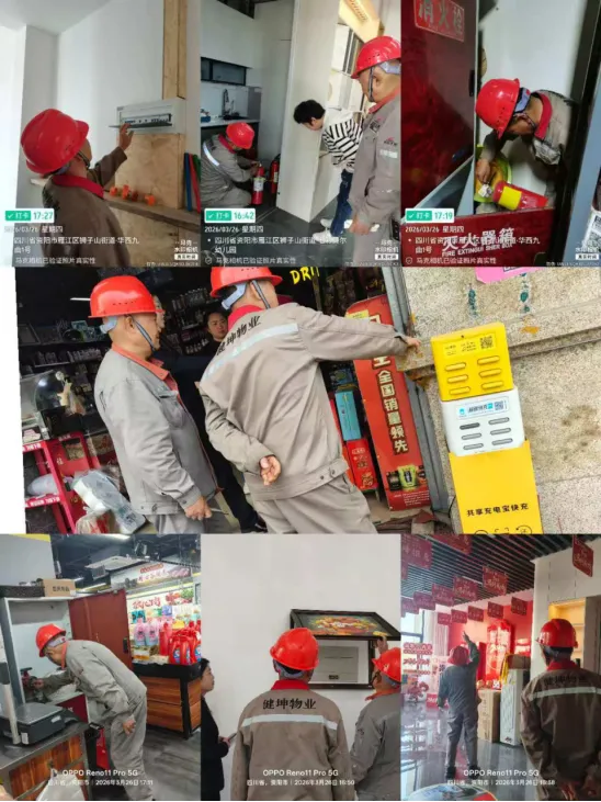 4、工程人员日常维修、公共设备的检修保养,到商铺检查消防器材和电源。