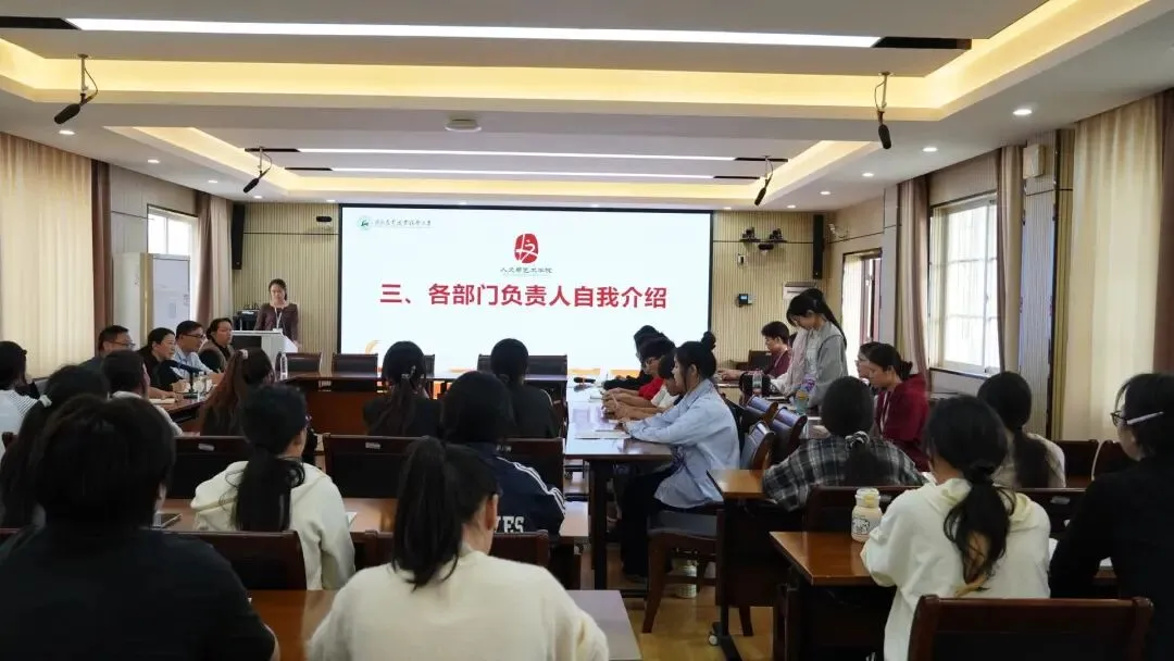 学院党委副书记、副院长(主持行政工作)尹江霞在会上对我院团学组织2025年度工作给予充分肯定,并向全体团学干部提出殷切期望。她指出,过去一年,团学组织紧紧围绕学院中心工作,在思想引领、校园文化建设、志愿服务、创新创业等方面取得了一定成绩,充分展现了人文与艺术学院青年学子的责任与担当。尹江霞强调,团学干部要以更高的标准要求自己,不断提升政治素养和业务能力,既要做同学们思想上的“引路人”,也要做服务同学的“贴心人”,要积极探索团学工作的新思路、新方法,团结带领广大青年学子坚定理想信念,练就过硬本领,在青春的赛道上奋力奔跑,为学院发展和社会进步贡献青春力量。