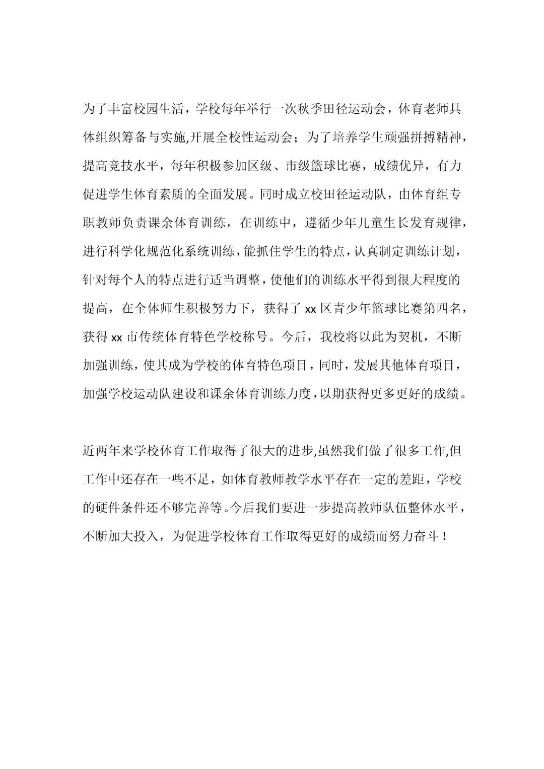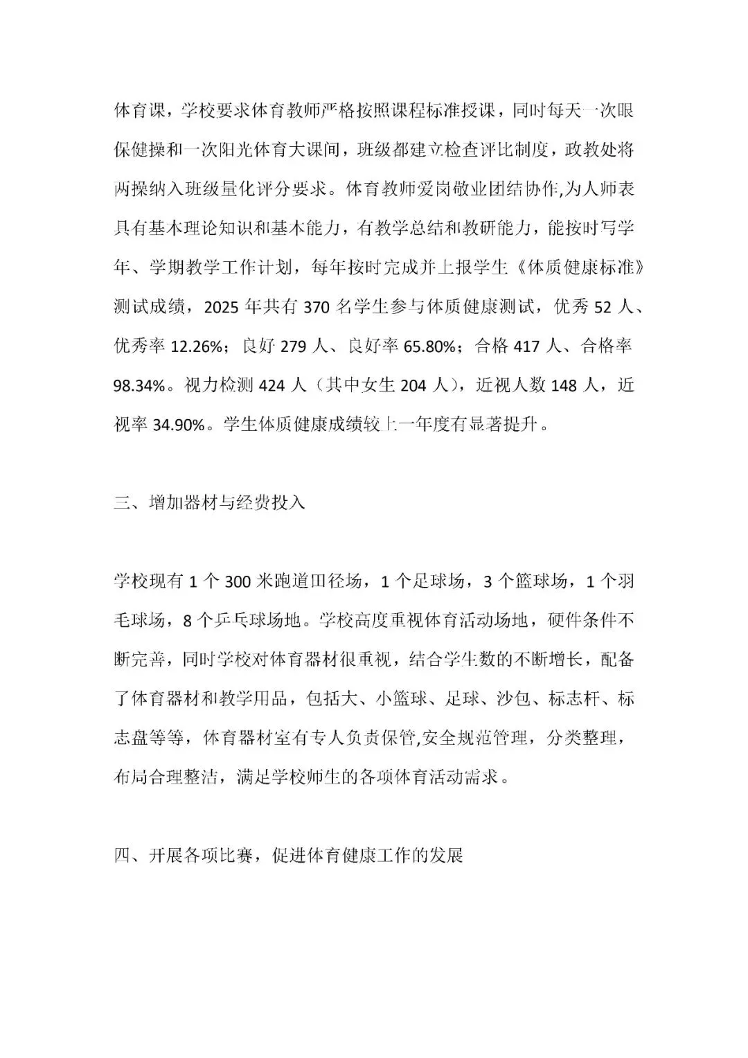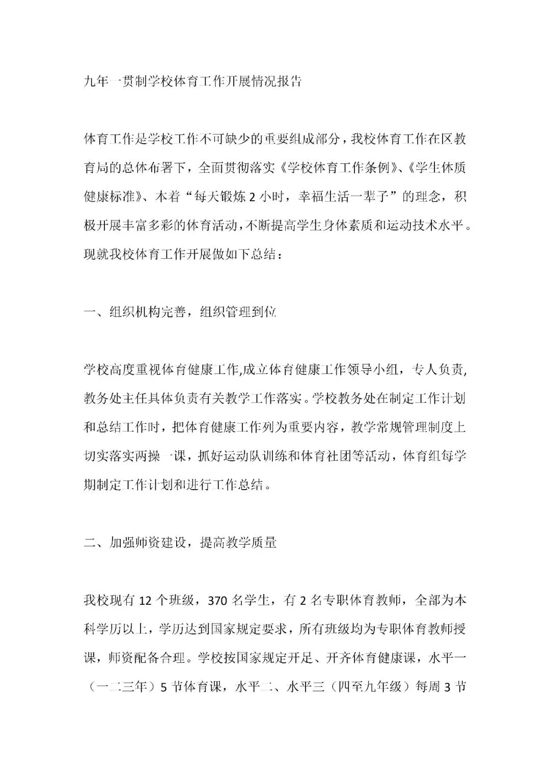 九年一贯制学校体育工作推进情况汇报模板