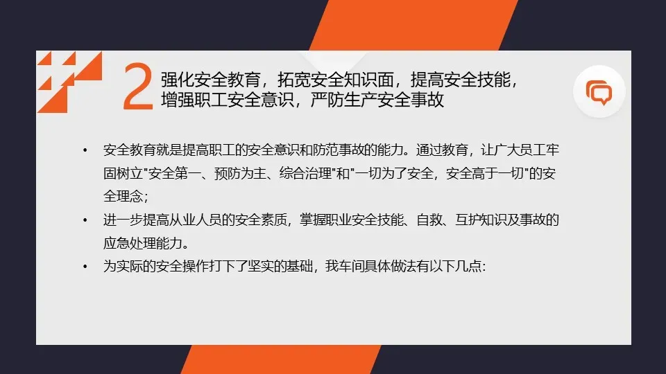 1. 加强安全培训和演练,提高员工的安全意识和技能水平;