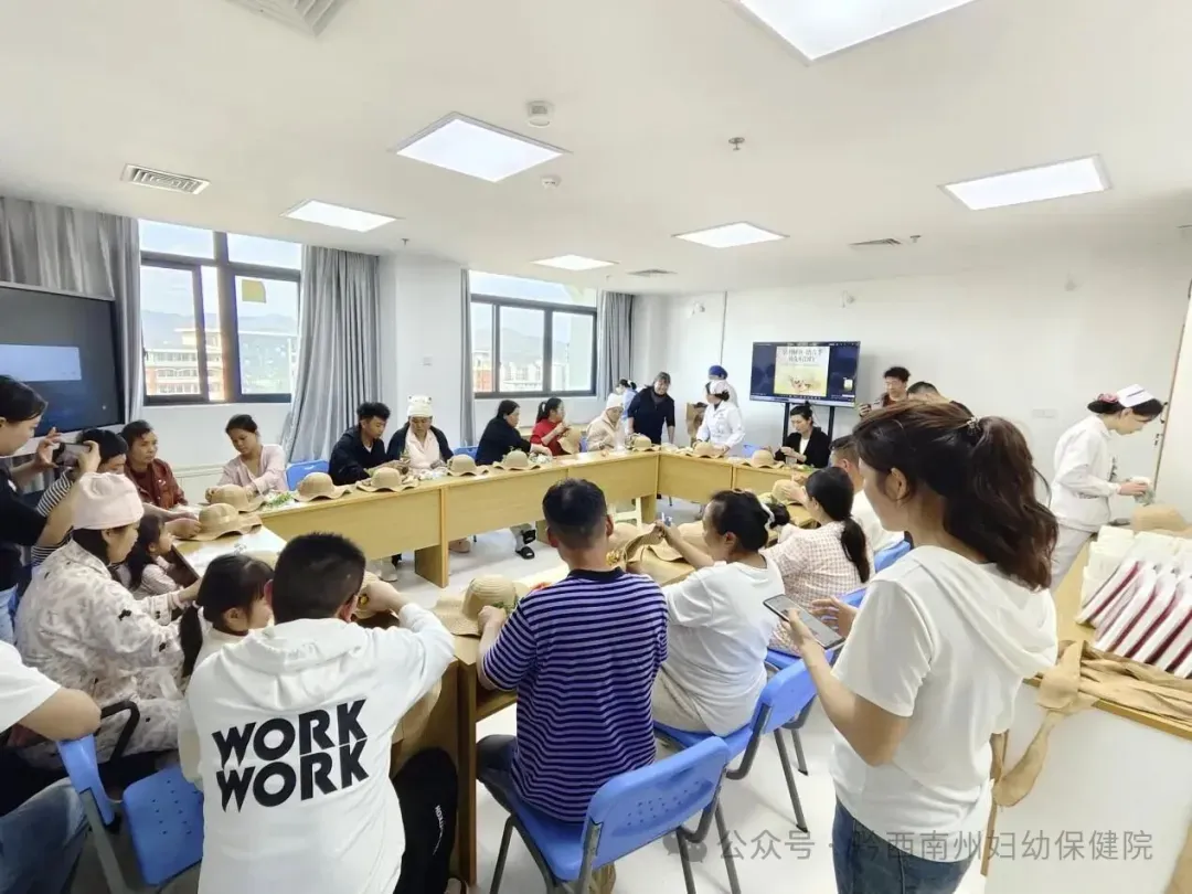 3月24日下午,黔西南州妇幼保健院产科在住院部五楼产科病区举办“孕期解忧·踏青季”仙女帽DIY活动。在医护人员的陪伴下,孕妈妈们围坐一堂,在手工老师的指导下精心编织属于自己的仙女帽,从造型勾勒到花饰点缀,大家巧思频现、互帮互助,现场笑语不断,氛围温馨融洽。一顶顶独具匠心的仙女帽在指尖诞生,孕妈妈们纷纷戴上作品合影留念,在手工创作中舒缓了孕期情绪,也收获了满满的喜悦与温暖。此次活动展现了产科细致贴心的人文关怀,今后医院还将持续开展形式多样的孕期关爱活动,陪伴孕妈妈们度过安心、愉悦的孕育时光。
