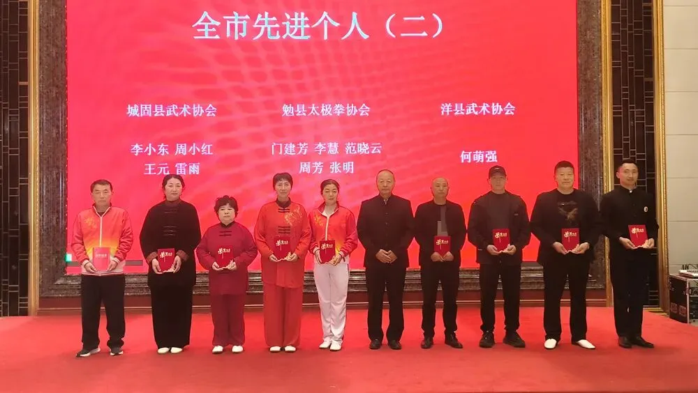 大会表彰了经各县区武术协会、太极拳协会、武术太极拳培训中心报送评选,并经市武术协会主席会议研究确定的先进集体和个人。会议号召广大会员以先进为榜样,学习他们默默耕耘在推动武术普及、组织赛事活动、培育后备人才等方面发挥的示范引领作用,学习他们以殷殷之情培育新人,在全民健身一线、在校园武术课堂、在社区文化阵地,用实际行动诠释中华武术当代价值的精神,学习他们守正创新、开拓进取,弘扬武术文化的时代担当,把对武术的热爱与执着,转化为推动事业发展的磅礴力量,共同绘就汉中武术繁荣发展的壮美画卷。