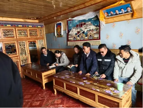 3月24日,州民政局局长多杰坚赞一行赴满掌乡调研民政工作并开展政策宣讲活动。
