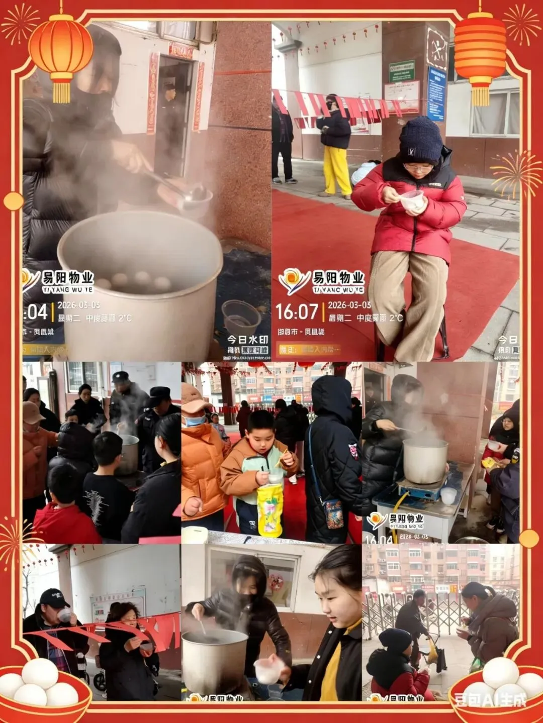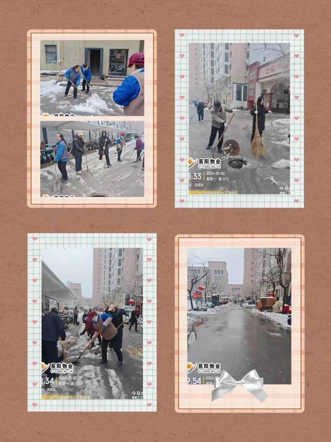 三月初,春寒料峭,一场不期而遇的春雪潇潇洒洒地飘落大地。银装素裹的世界为元宵佳节披上了一层浪漫的色彩。在这冰雪与节日交织的三月里,易阳物业全体工作人员始终坚守岗位,用心服务。现将本月的工作详情向各位业主汇报:🥟 风雪无阻,情暖元宵