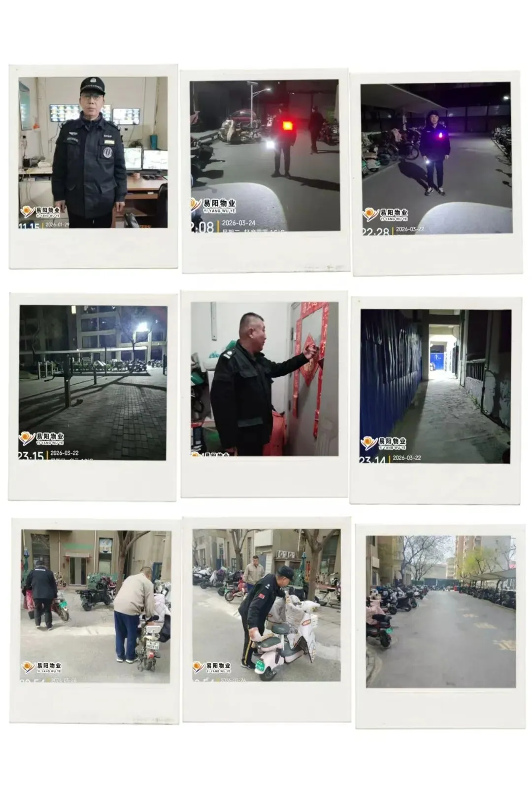 秩序篇:在小区的出入口,在巡逻的路上,秩序维护员的身影从未缺席。他们用坚定的步伐守护着园区的安全。他们24小时始终坚守岗位,严格执行车辆出入制度,仔细排查安全隐患。夜深人静时,他们依然在园区内巡逻,守护着业主的安宁。