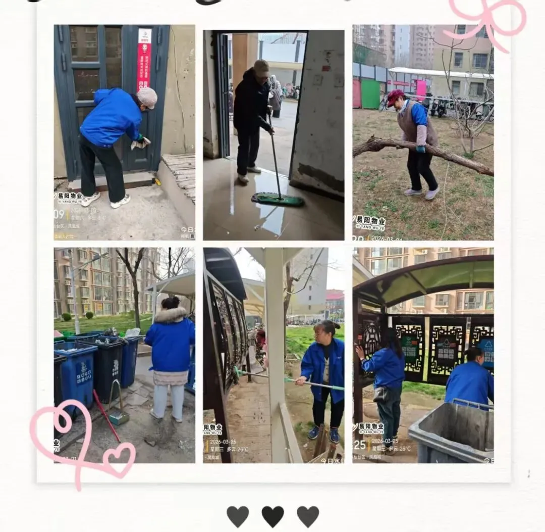 三月末,春暖花开,万物复苏。柳树抽出了嫩芽,桃花竞相绽放,整个大地洋溢着勃勃生机的春天气息。易阳物业全体人员整装待发,将以更加饱满的精神状态,继续为业主提供温馨、贴心的服务,与您共同守护美好家园!